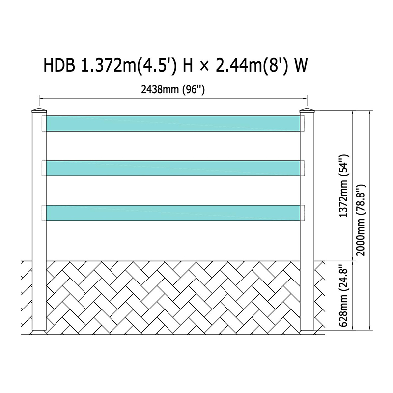 Ag seasamh ag airde caighdeánach de 54 orlach, cuireann ár bhfál solúbthacht ar fáil le roghanna éagsúla airde chun freastal ar do riachtanais shonracha. Tomhaiseann gach rannóg 96 orlach ar leithead, le méideanna saincheaptha ar fáil, rud a ligeann duit oiriúnach foirfe a chruthú do do phaddock nó do limistéar marcaíochta. Tagann na poist láidre 4 "x 4" nó 5 "x 5", atá ar fáil ar airde 78 orlach, roimh ré le haghaidh suiteáil éasca i bhfoirmíochtaí éagsúla, lena n-áirítear socruithe líne, deireadh, cúinne, agus 3-bhealach.