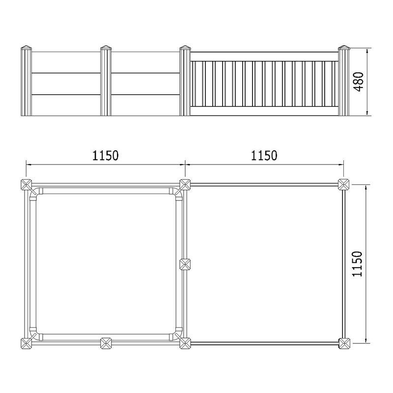 Ar fáil i dtrí mhéideanna - 74.8'l x 37.4''w x 18.9''h, 90.6'l x 45.3''W x 18.9''H, agus 116.6'l x 58.3'W x 18.9''H - cuireann an bosca seo go leor seomra ar fáil do phóir éagsúla. Cinntíonn na poist sturdy 3 "x 3" le caipíní cothroma cobhsaíocht, agus tá iarnród muc chothromaithe ag an iarnród 7/8 "x 6" roimh ré.